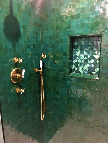 We turned a one-car garage and its entryway at this 40-year-old Staatsburg property into a home office, laundry room, and fourth bathroom. The striking green bathroom boasts premium Moroccan tile and unlacquered brass fixtures, which will darken and develop a warm patina as they age but will last a lifetime and never rust.
