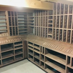 If you’re a wine lover, a wine room or cellar is a wonderful addition, if you have space. Now our clients can fit their vast collection in this one, which is right below a stand-alone kitchen we built for outdoor entertaining.